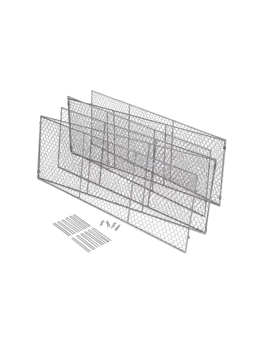 - Kit includes: Two 3-panel sections (6 panels total), Cotter pins (4 total), 6″ Staples (12 total)
