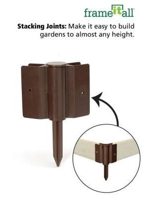 Your kit comes with everything you need except the soil and plants. The insulating open-channel boards trap air, providing insulation to your soil. Keeps soil warmer in the Spring and Fall, and cooler in the Summer, so you can grow for an extended period. Stacking brackets allow you to install the additional layers of your garden just by inserting the stakes into the brackets below.