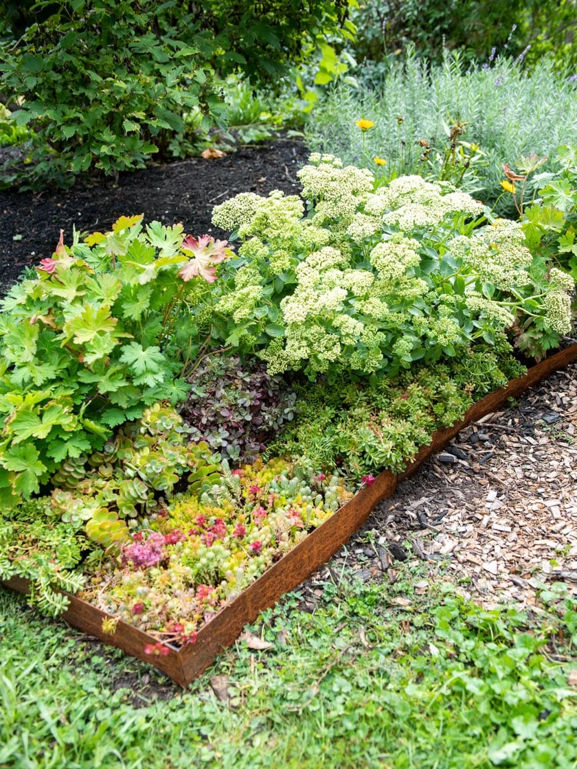 Create an utterly unique look for your green spaces with edging in Corten weathering steel. “Cor-ten” stands for “corrosion resistance” and “tensile strength” — both of which make for long-lasting and distinctive looking landscape edging. The material develops a protective patina of rust over time, but does not degrade.