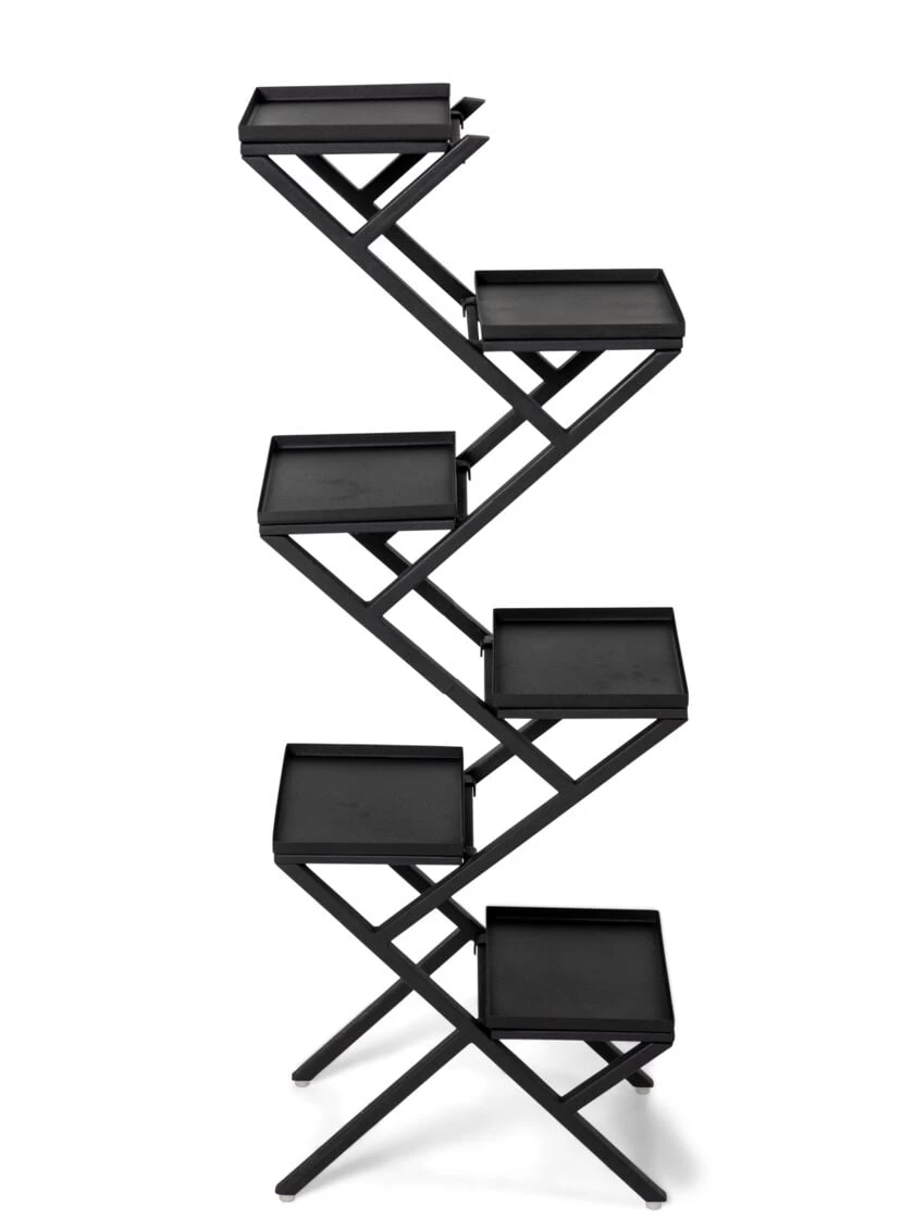 Alternating slatted shelves with a striking see-through silhouette offers an alternative to staid and stale plant stands. Six shelves at different heights let you elevate your plants to a new level. Stylishly display potted plantings, your favorite watering can, and other treasured collectibles.