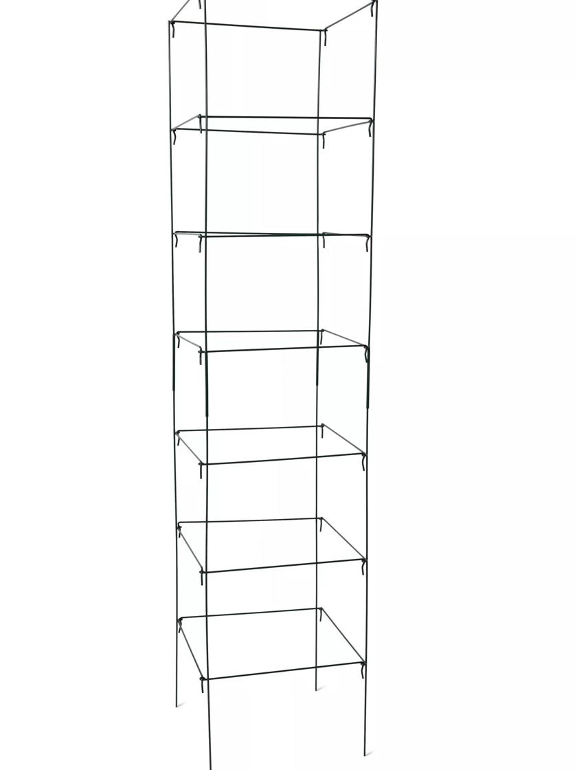 Even huge, fruit-laden heirloom tomato varieties and other monster plants can’t make these cages bend under their weight. Made from super-strong, super-durable, 3/8″ diameter powder-coated steel with 11″ between each rung for easy harvesting. Stackable for storage.