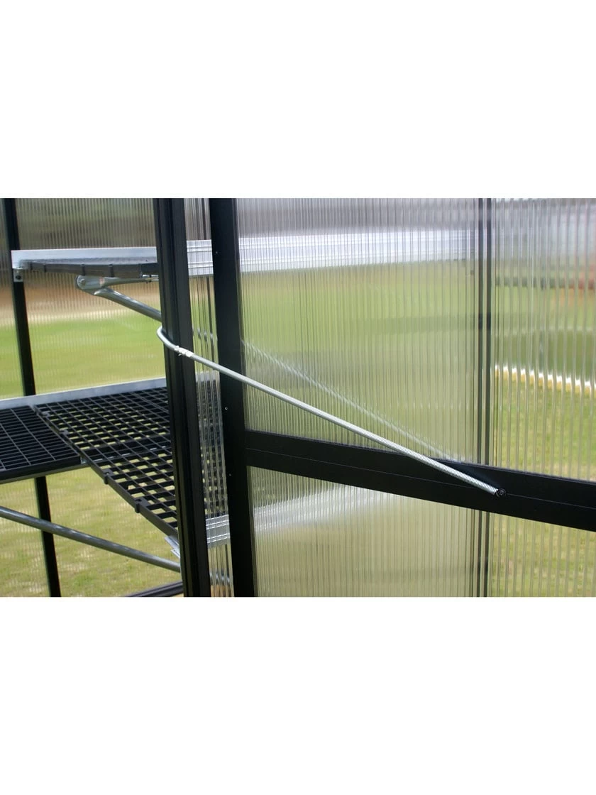 The secret is our twin-wall polycarbonate panels. They’re a triple threat! Firstly, they are light-diffusing, more evenly distributing sunlight to produce a glow instead of a light beam effect. They also offer a higher level of privacy — just 8 inches away and you can’t see into the greenhouse. Finally, the twin-wall panels act like a double-pane window, providing insulation to extend your growing season and increase your energy efficiency in every season. But that doesn’t mean we leave climate control up to chance!