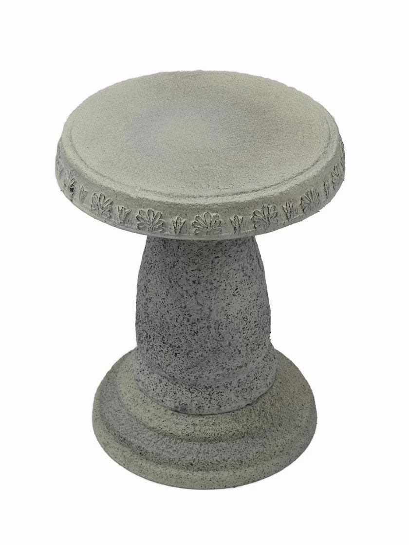 Perfect as either stool to sit on and/or use as side tables and/or plant stands: Made from Fiber Clay – designed to look like classic concrete. Fiberclay is made from 70% finely pulverized clay/earth, 25% recycled polyester resin and 5% non-toxic organic binders; good down to 0º F. The pedestal part can be filled with sand for added stability (when being used as a plant stand). (Note: product not designed to “rock-back and forward”)