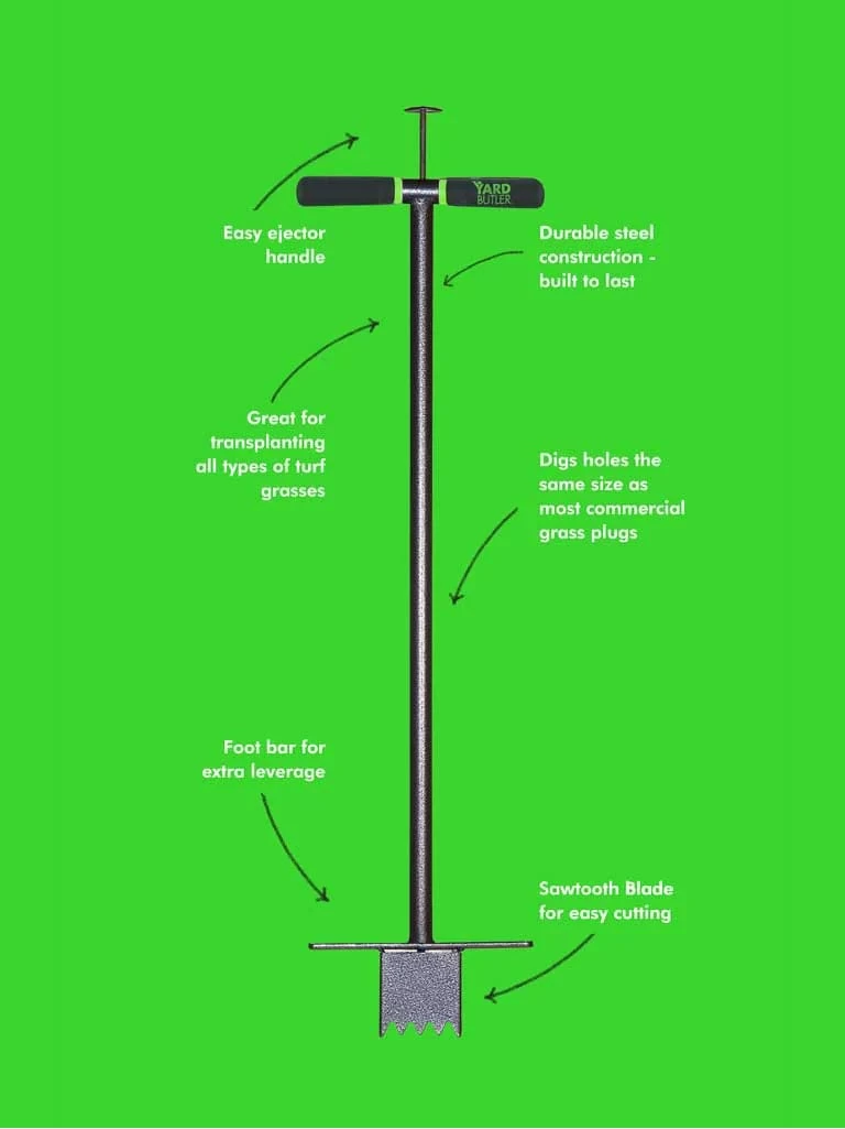 The grass is always greener at your house thanks to the sod plugger. Plant, repair, or remove lawn and turf with ease. The long handle with an easy ejector lets you stand upright, while the foot bar gives you extra leverage to cut through even the peskiest grass roots. Heavy-duty steel gets welded together to craft this lawn saver so you can stomp on that foot bar for years to come.